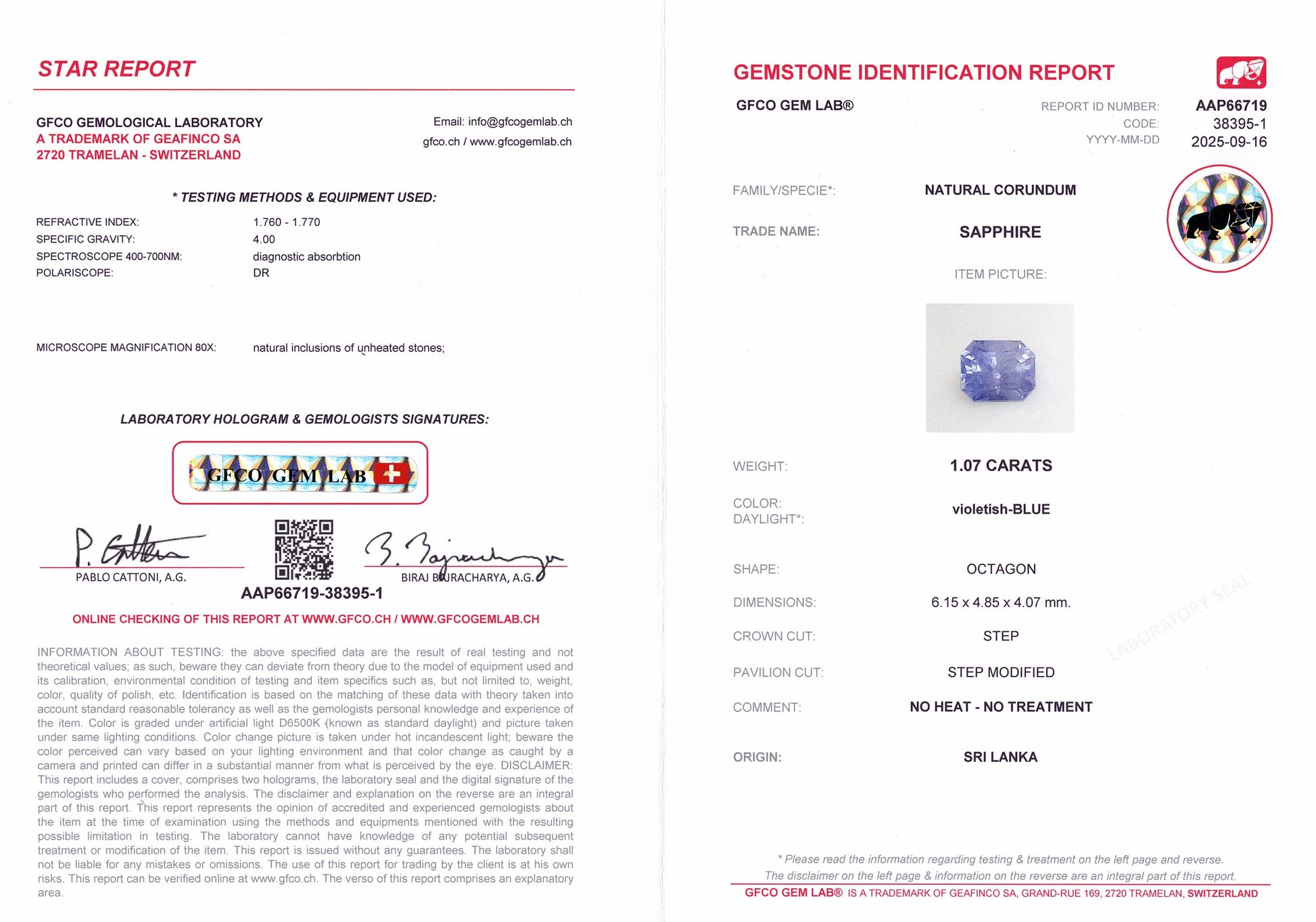 The experts at GFCO Gem Lab carefully assessed and certified this sapphire to ensure its authenticity, giving you assured confidence in your precious gemstone investment.