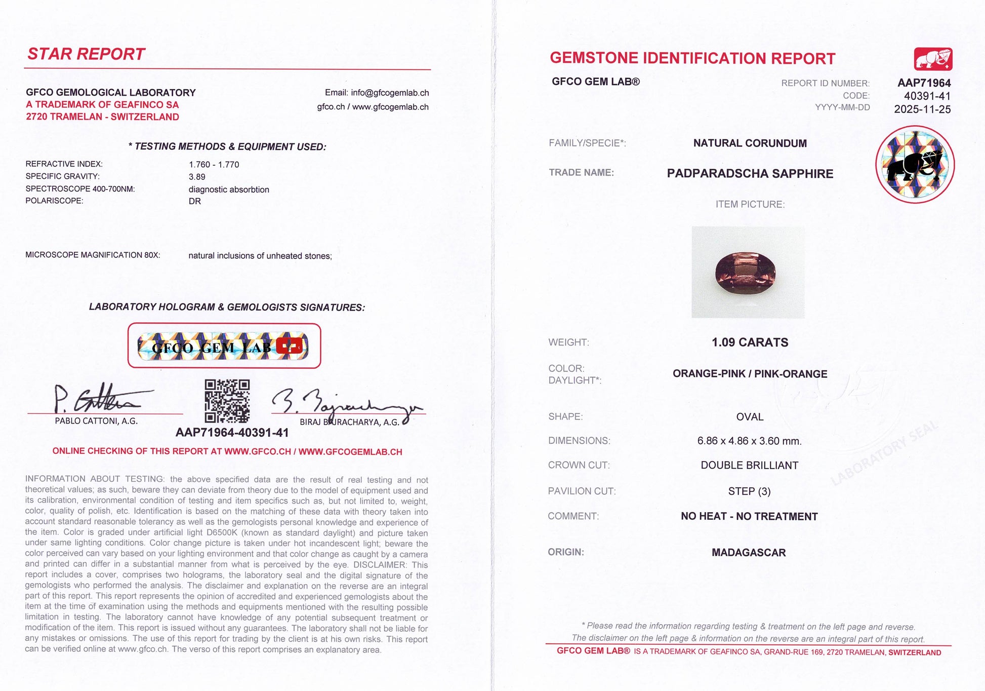 1.09ct Padparadscha Sapphire Unheated